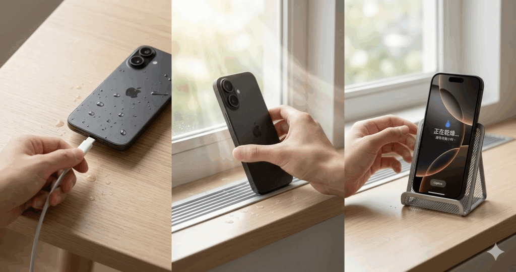 📌 這些方法主要適用於液體尚未入侵內部顯示模組之前的情況,例如手濕碰到螢幕、接觸雨水等。